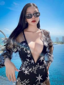 รับกับจมูกโด่งๆ ริมฝีปากอวบอิ่ม แถมหุ่น ก็ เพรียวบาง แขนขาเรียวยาว เอวบางเฉียบ ผิวขาวเนียน ละเอียดออร่าเปล่งประกาย ที่สำคัญ คือ หน้าอก หน้าใจอวบๆ ใหญ่จน ล้นทะลัก ดึงดูดสายตา