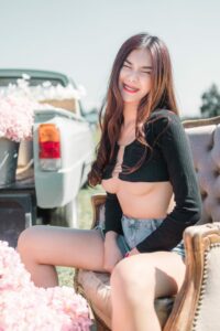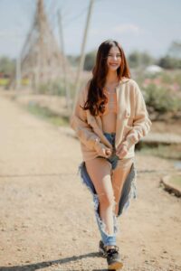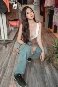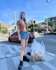 น้องโอลีฟ เน็ตไอดอลน้องใหม่ขวัญใจชาวเน็ตใส่เสื้อแหวกสีส้มโนบรา